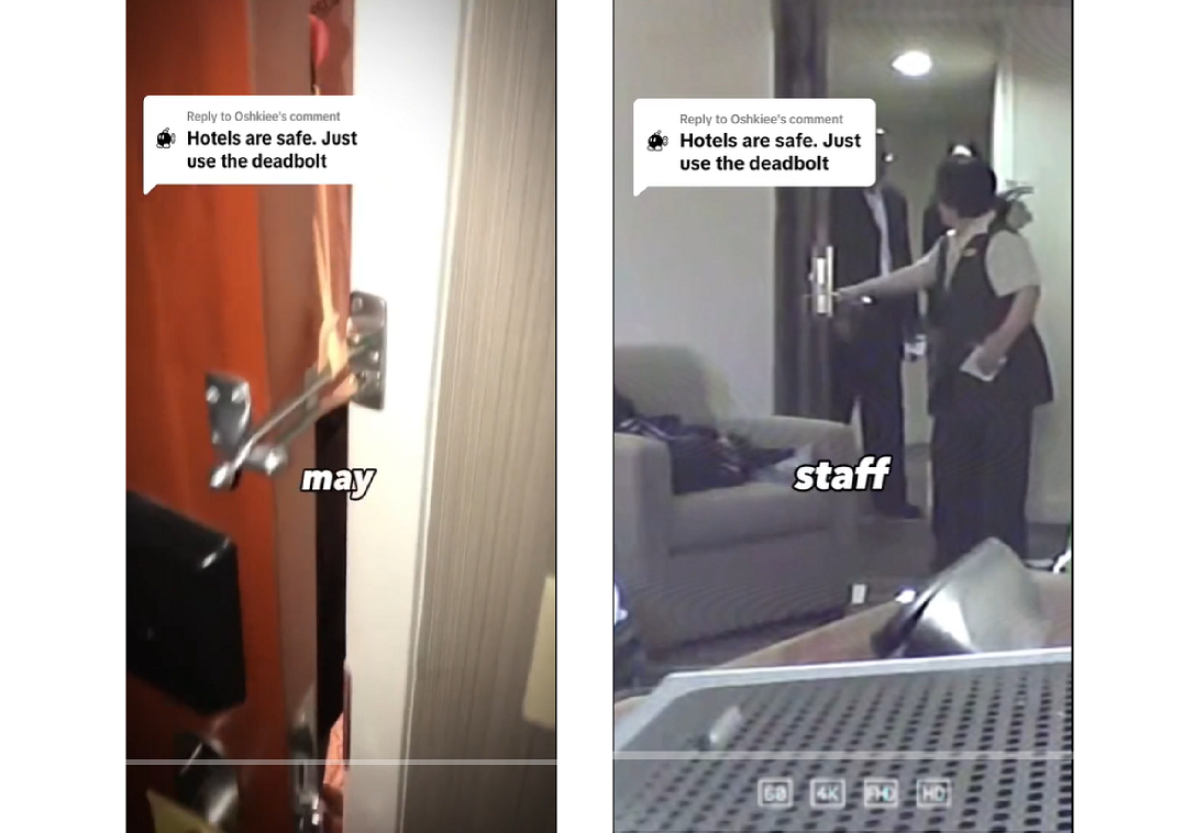 视频起始告知观众: “酒店似乎很安全,但是还是要警惕可能发生的坏事。”非常漂亮的钩子勾起观众的好奇心。