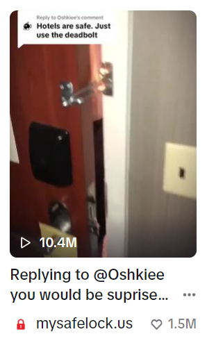 在视频最后,再次利用恐惧营销强化观众对外出居住的恐惧和担忧,“记住,住酒店不是你想象中的那么安全,产品购买链接在BIO。”