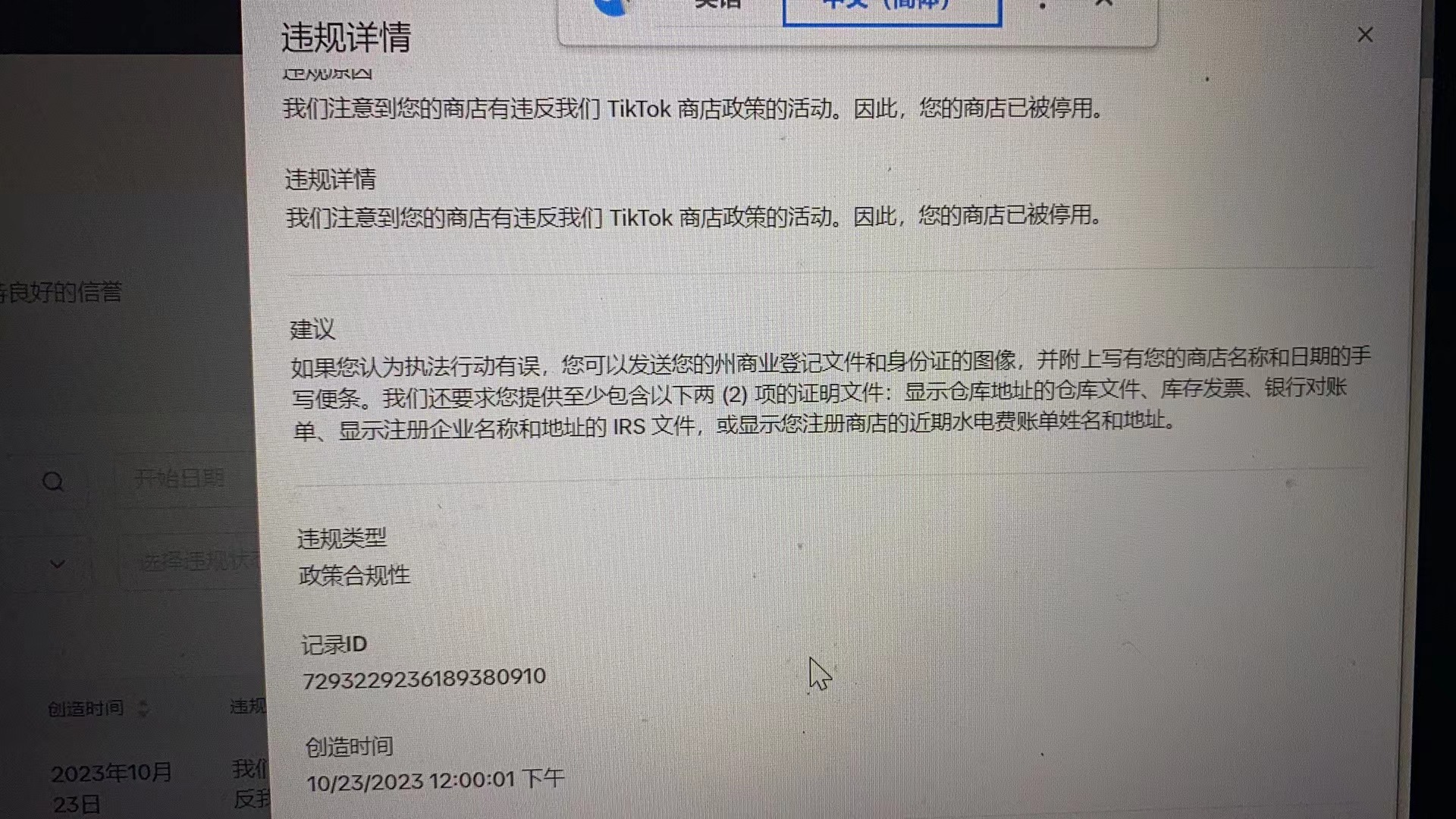 美国本地注册的TikTok小店收到了官方发送的邮件,经查证发现店铺被要求进行审查。