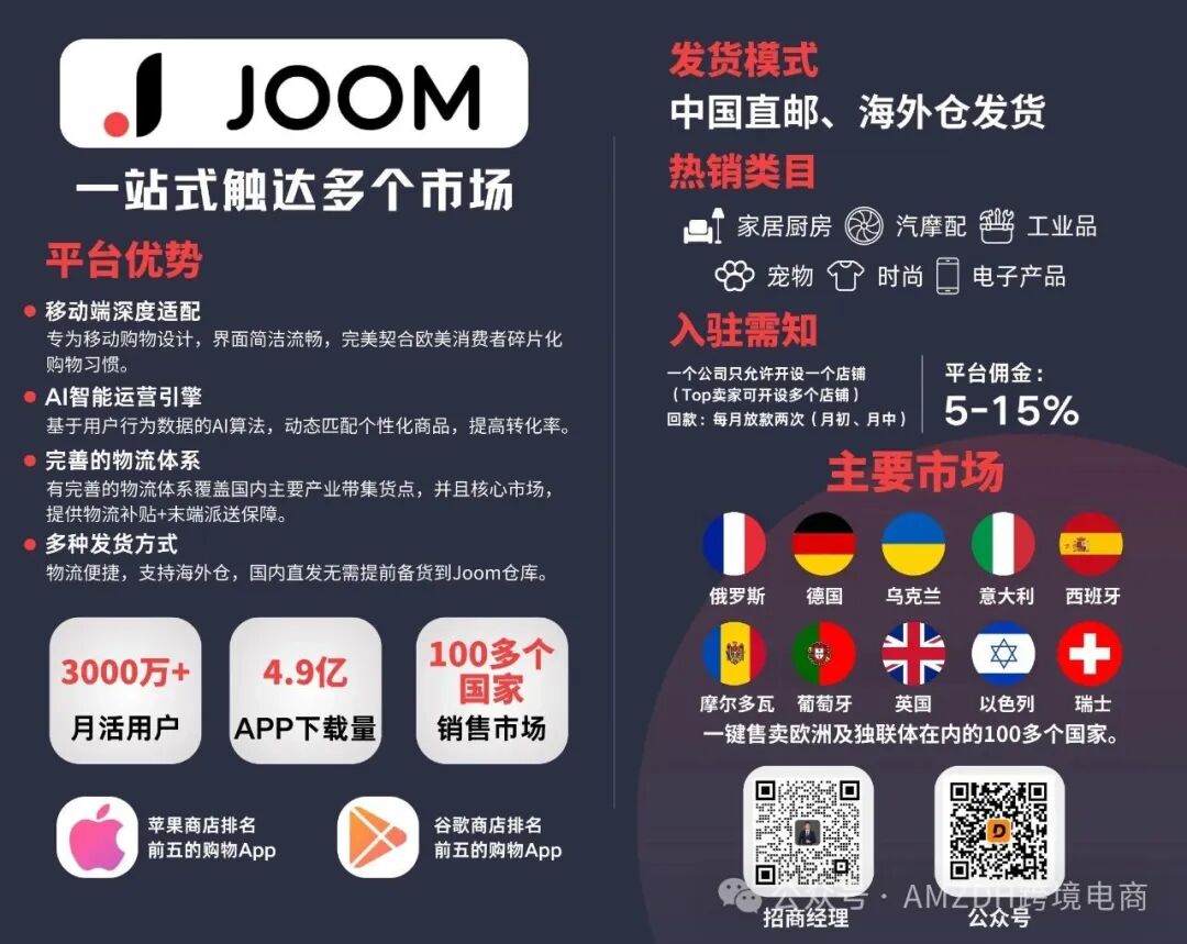 种种迹象表明俄罗斯电商市场已经结束爆发式增长期(2022年卖家增速为190.5%,2024年降至115.4%),并进入以多渠道布局为特征的成熟发展阶段。现在卖家也发现Ozon和WB平台也越来越卷,说不定Joom平台是个不错的选择哈。了解更多跨境平台,可以添加下方二维码咨询!通过我们入驻Joom,下店后享官方运营扶持(至2025年年底)。