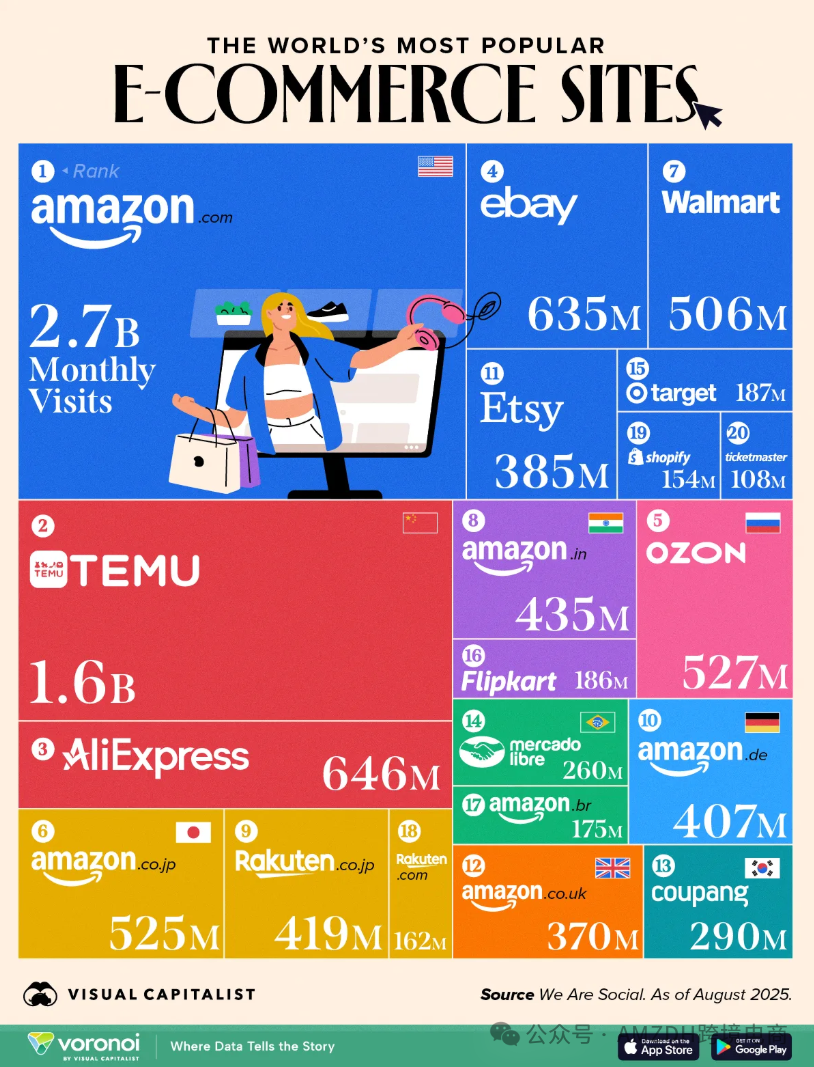 2025全球电商访问量TOP10榜单揭晓:亚马逊领跑,中国平台强势崛起