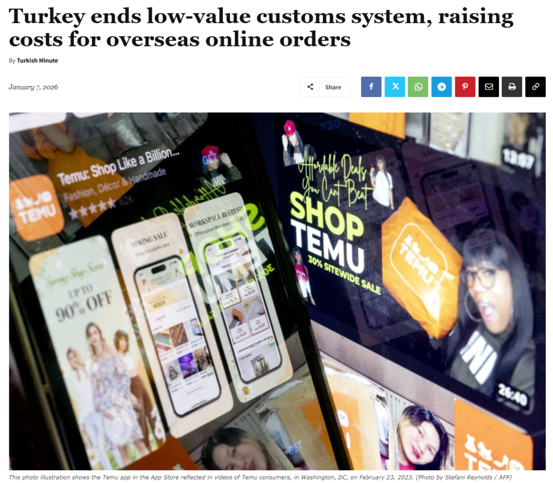 AMZDH获悉,2026年刚开年,土耳其跨境电商市场就迎来重磅政策调整 ——1月9日,土耳其政府正式宣布,自2月1日起全面取消跨境电商低价商品的简化清关和免税政策!这一政策变动直接改写土耳其跨境贸易规则,对中国卖家而言,既是挑战也是布局新机遇的关键节点。