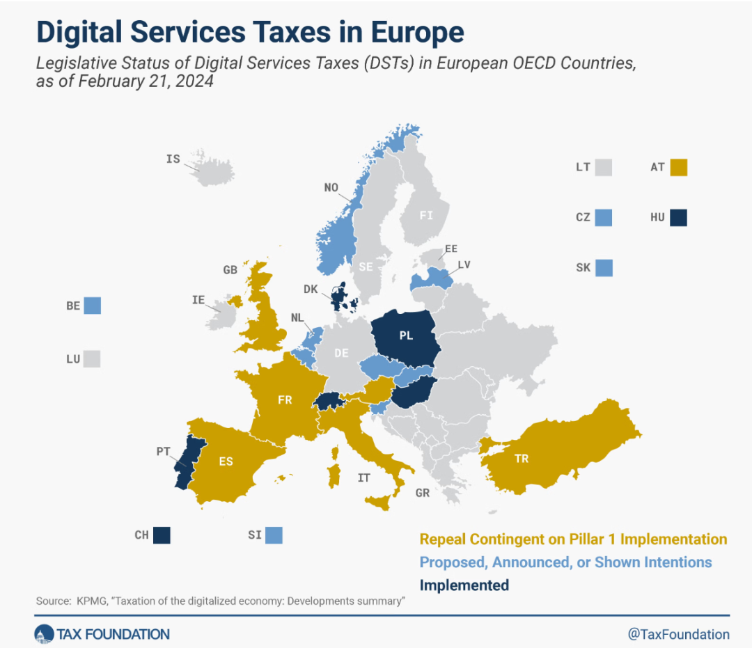 🔺欧洲已颁布数字税的国家 图源:taxfoundation.org