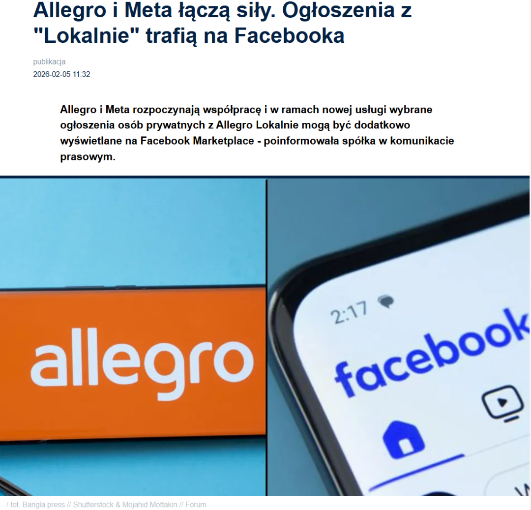 作为波兰本土乃至东欧地区的电商 “领头羊”,Allegro拥有98%的品牌认知度,2025年第二季度活跃买家已达2110万,在波兰电商市场占据超60% 的份额,是当地消费者网购的首选平台。而Meta旗下的Facebook Marketplace则是全球知名的社交二手交易平台,凭借海量社交流量成为线下交易线上化的重要载体。此次两大平台强强联手,核心瞄准个人二手商品交易的曝光度提升与流通范围扩大,为欧洲二手消费市场注入新活力。
