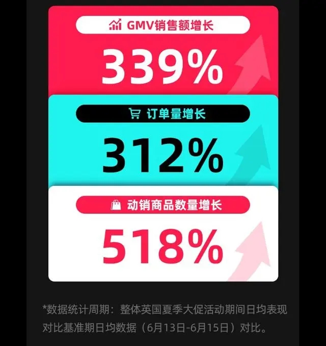 日前,TikTok Shop英国全托管夏季大促正式落下帷幕,在运用内容和货架双驱动方式下,TikTok Shop交出了亮眼的答卷。此次大促期间(6月21日-7月4日),TikTok Shop英国站GMV销售额增长339%,订单量增长312%,动销商品数量增长518%。