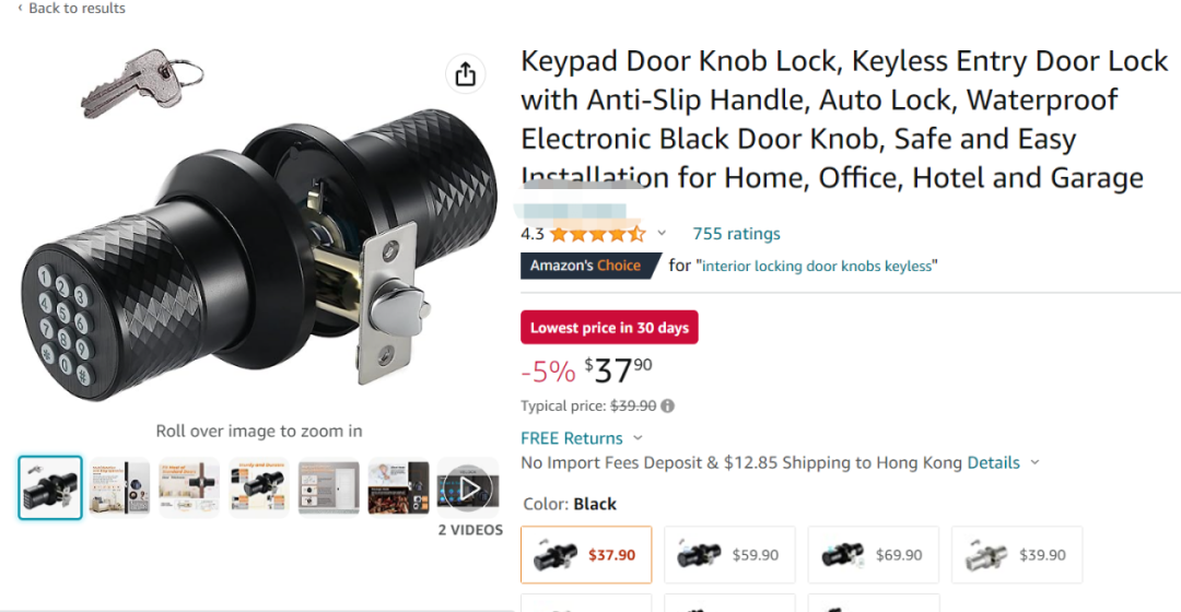 JUN LU是来自广东的一名中国卖家,专门设计和销售智能门把手。其中,Electronic Door Knob是他在亚马逊上销售的一款电子门把手,具备数字键盘功能,采用高质量的金属饰面和坚固的锌合金结构,不仅耐用而且具备强大的安全机制,为个人空间提供了隐私和保护。