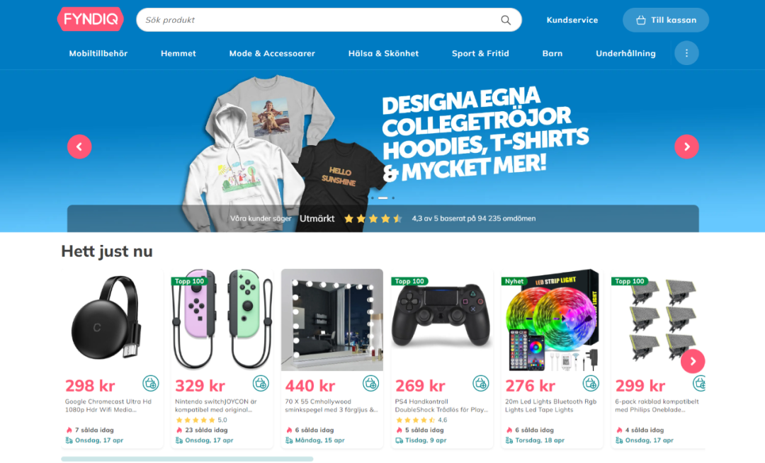 Fyndiq是瑞典最大的电商平台之一,官网:www.fyndiq.se 业务已覆盖北欧四国(瑞典、芬兰、挪威、丹麦)。该平台以其独特的折扣促销模式吸引了大量用户,成为众多消费者和卖家的首选平台。以下是AMZDH对Fyndiq平台的整理介绍,文末也有介绍入驻流程: