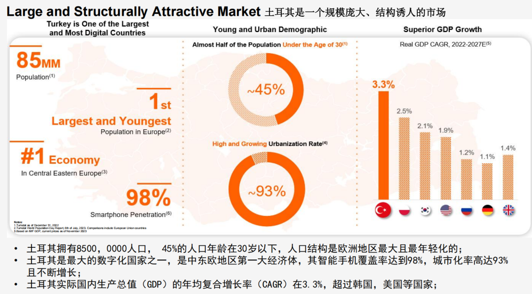 土耳其人口超8500万,互联网渗透率74.3%,电商消费主力人群占比67.1%,中国商品进口占比达70%-90%。