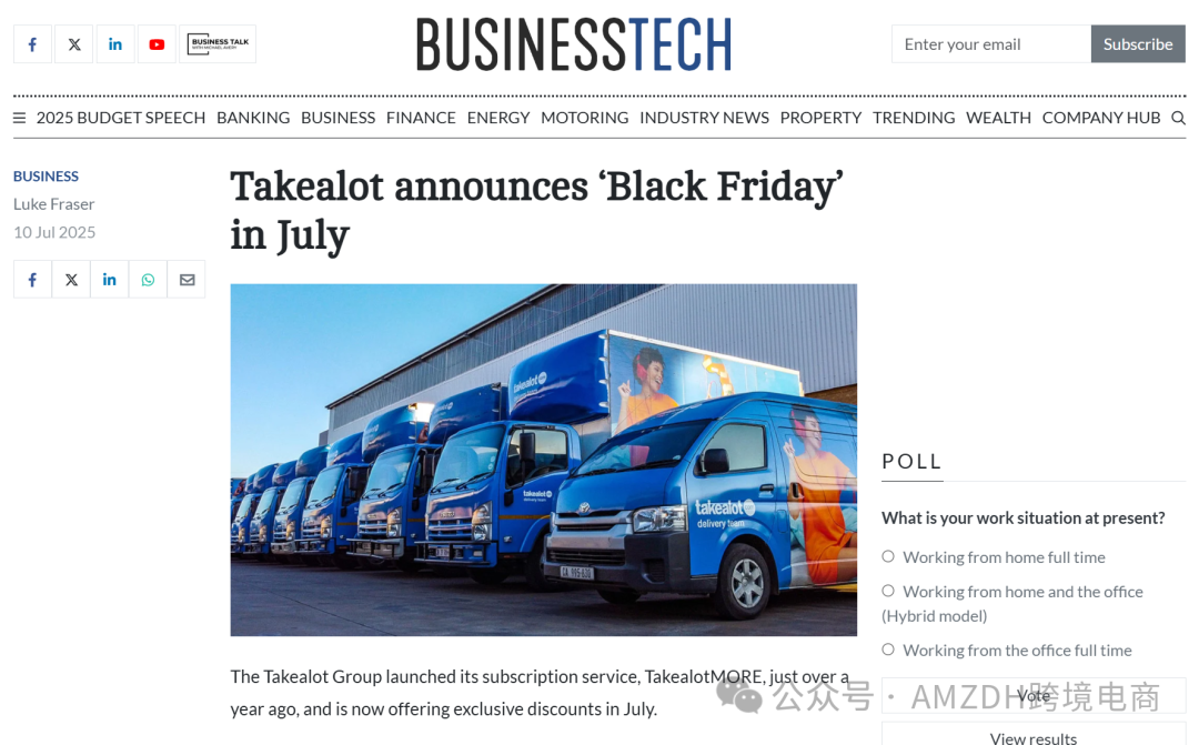数据亮点:2024年黑五期间,Takealot单日订单量突破80万单,GMV同比激增65%,预计2025年将再创新高。
