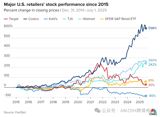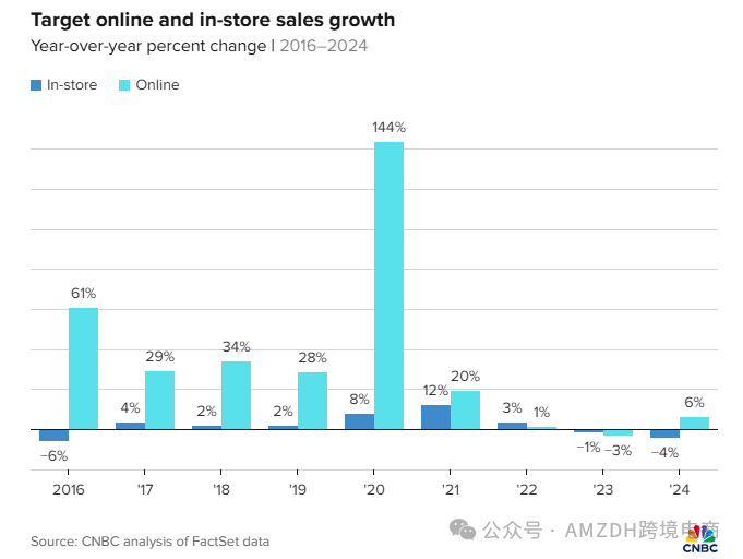 AMZDH获悉,2025年7月15日,美国零售业传来震撼消息,据美国CNBC报道:百年老店塔吉特(Target)因销售持续下滑、CEO合约到期未续,陷入发展困境。这家曾以“廉价时尚”风靡中产的零售巨头,为何在短短几年内从巅峰跌落?其背后的战略失误与行业变革,值得所有企业深思。
