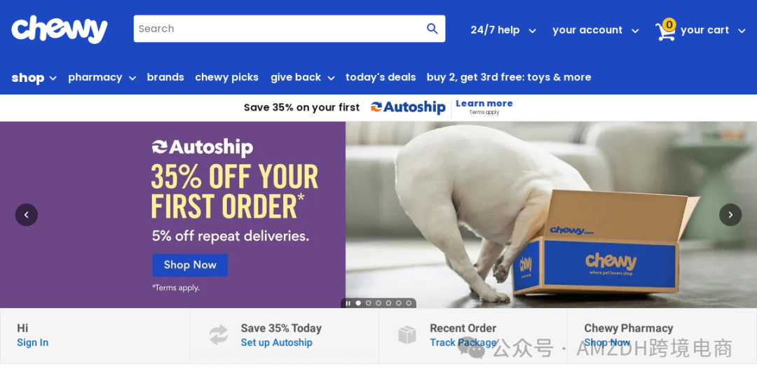 Chewy(官网www.chewy.com)是美国最大宠物电商平台,市场占有率约50%,远高于亚马逊的35%~40%,之前我们已经多次介绍过该平台,Chewy平台2025年开放中国卖家入驻,现在入驻渠道已经很顺畅,平台最新招商政策有所调整,AMZDH今天将最新的入驻政策Push给给位感兴趣的卖家。