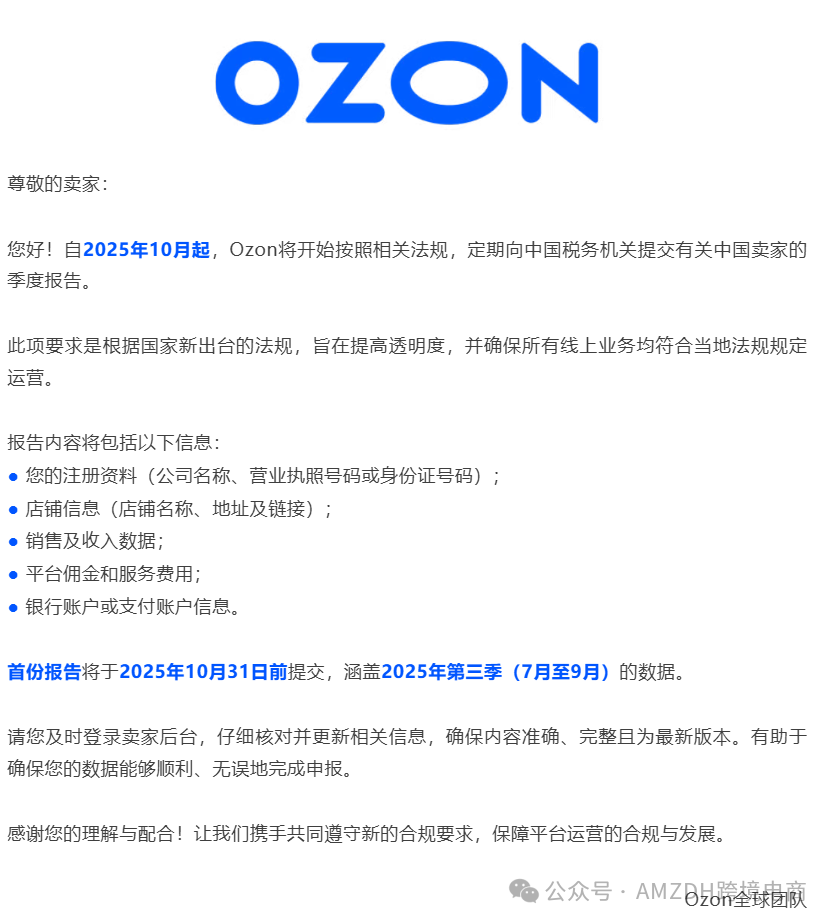 根据公告,Ozon平台需向中国税务机关提交两类核心信息: