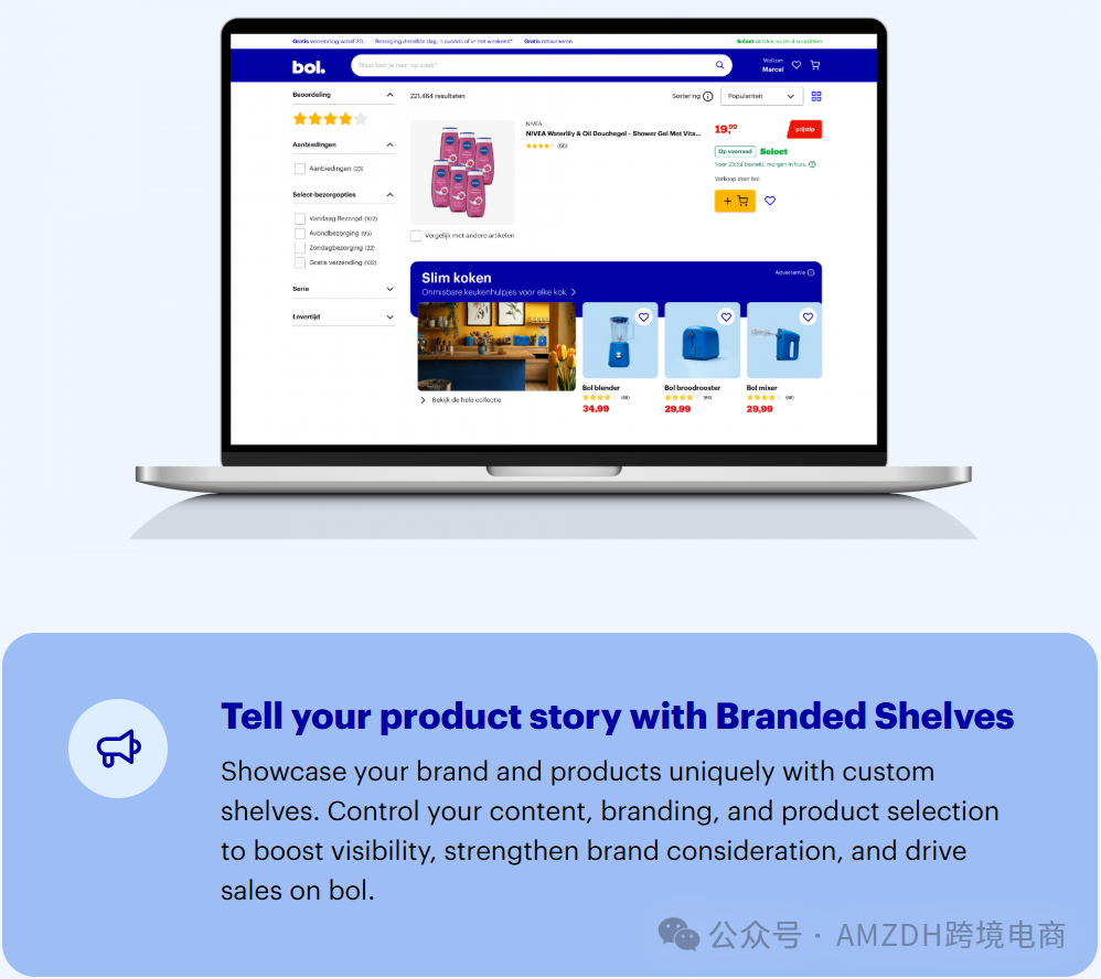 对于品牌卖家,Bol推出的“Branded Shelves”功能堪称“线上品牌旗舰店”!品牌可自主设计数字橱窗,通过高清图片+走心文案+精选商品组合,打造沉浸式品牌体验。试点期间,300+合作品牌已通过该功能实现:品牌识别度提升40%,用户停留时长增加25%,转化率提高18%!无论是美妆新锐还是家电巨头,都能在平台海量商品中“突出重围”,让消费者一眼锁定你的品牌故事!