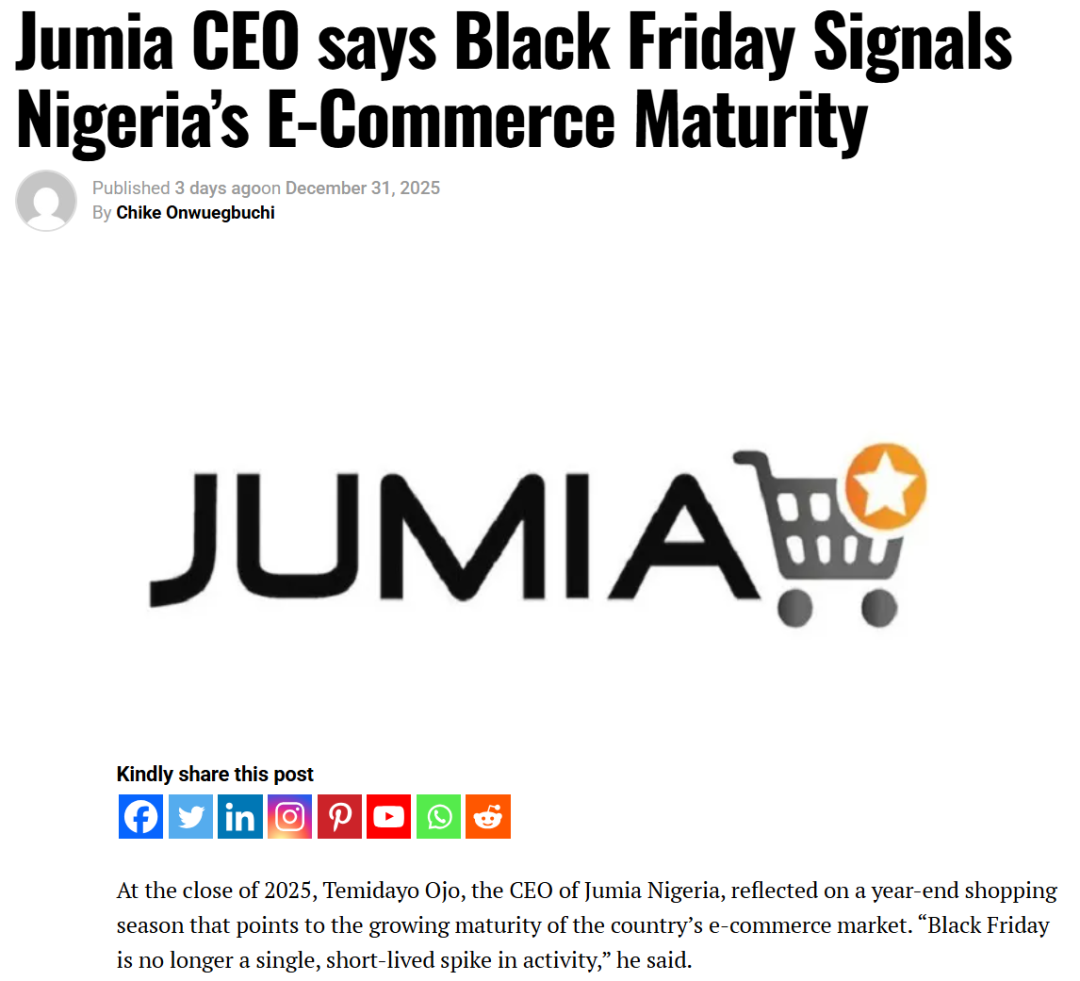 Jumia尼日利亚CEO复盘2025年末市场:电商生态迈入结构性成熟阶段