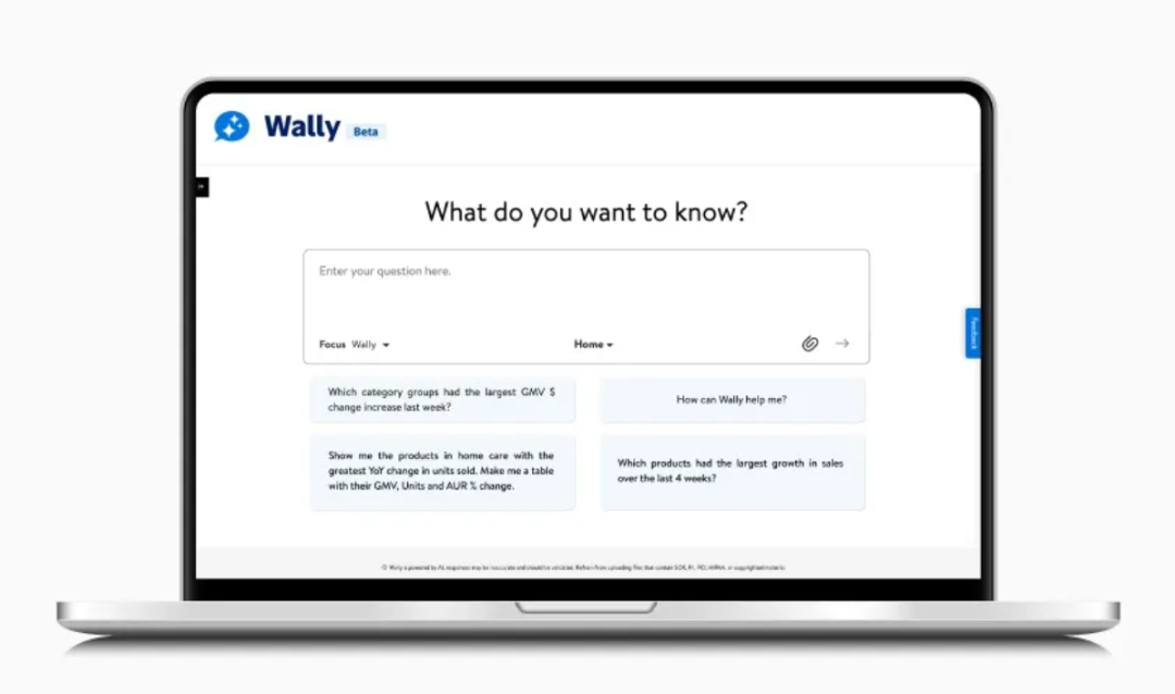 据外媒报道,近期,沃尔玛推出生成人工智能(AI)助手Wally,帮助商家优化采购决策,并提升线上下运营效率。Wally基于沃尔玛专有数据,能够即时生成商业洞察,为商家提供数据支持。该工具可自动执行数据分析、识别产品表现变化原因、解答运营问题,并创建待处理工单。此外,Wally还能执行复杂计算和销售预测,减少手动操作,提高供应链管理效率。以下是AMZDH对该AI助手的整理介绍: