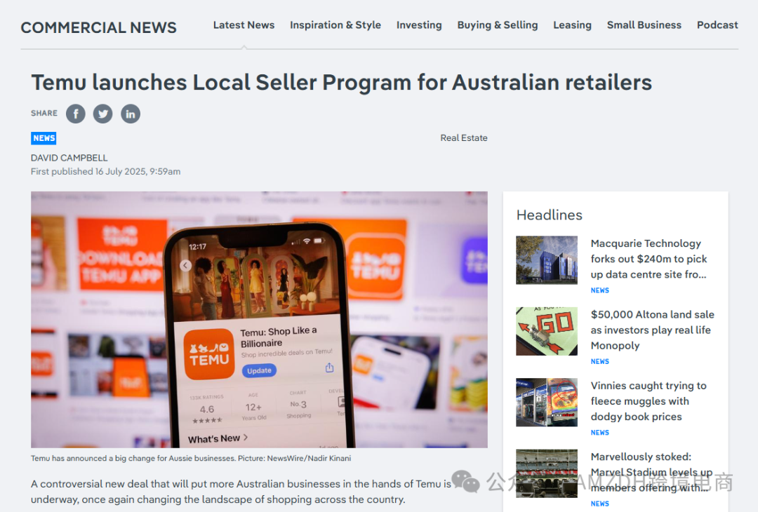 TEMU开放澳大利亚“本地卖家计划”,有本土仓库的澳企可直接入驻