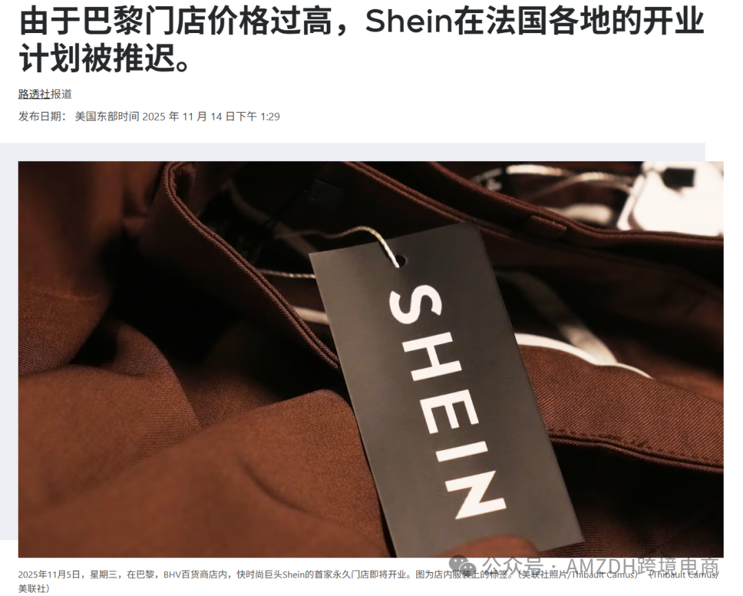 AMZDH获悉,11月15日,SHEIN宣布推迟原定于2025年初在法国第戎、兰斯、格勒诺布尔、昂热和利摩日五地老佛爷百货开设新特许经营店的计划。此番调整源于其巴黎BHV Marais首店暴露的价格体系问题——消费者发现实体店商品价格普遍高于线上同款,引发“线上低价引流、线下溢价变现”的质疑。SHEIN在声明中强调,当前将优先聚焦巴黎首店的体验优化,该店自开业以来“客流量与销售额均超预期”,但具体优化方向尚未披露。
