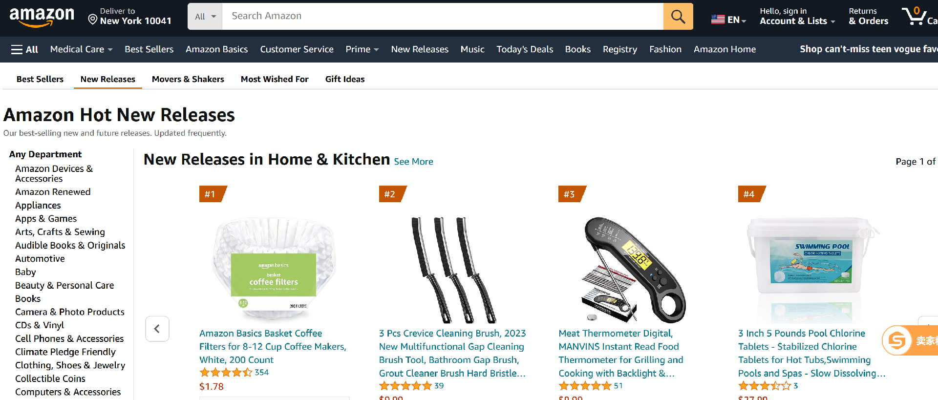 众所周知,新品有红利期,所以我们必须大大地珍惜这段时间,虽然说新品老品都是自己儿子,但是新儿子会得到亚马逊更多得辅助!如果数据好,很容易成为Hot New Release。New release会出现在一个类别的页面的右上方,在这个页面,你将能看到一系列已经在亚马逊上畅销、或是预计将会畅销的新产品。