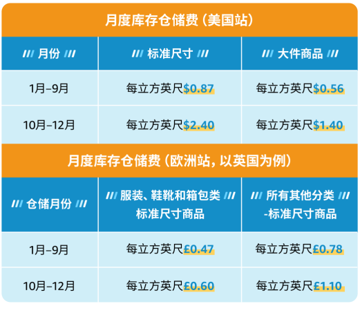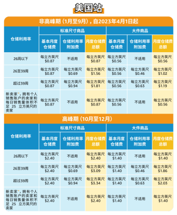 2023年4月1日开始,亚马逊对欧洲站点和美国站点仓储利用率高于26周的,符合亚马逊仓储利用率附加费征收标准的专业卖家征收附加费。仓储利用率以当月最后一天的数据计算,如果高于26周,则在次月将这一附加费计入月度仓储费用当中。