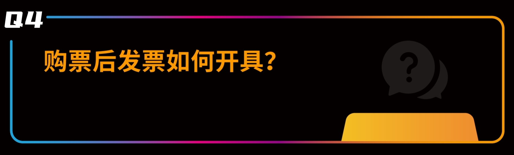 答:用户如果只需要一张整单发票,在付款后自动弹出的发票信息栏中提交即可;如果需要多张发票,请在购买成功后,附订单截图直接发邮件给会务组公邮2023CNSellerCon@freeman.com,组委会预计于7个工作日内完成并回复。