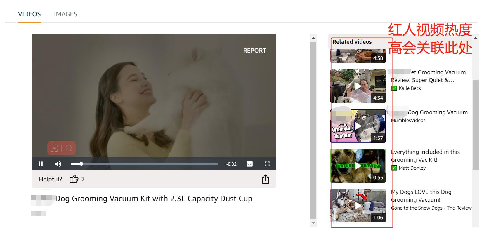 第二点好处呢就是,亚马逊红人视频达到热度会被亚马逊推荐到其它竞争对手同类产品的Related video 后面版块,那竞争对手的买家在访问时也会跳到自己的链接来,所以说这样的站内红人视频谁又会不爱呢?