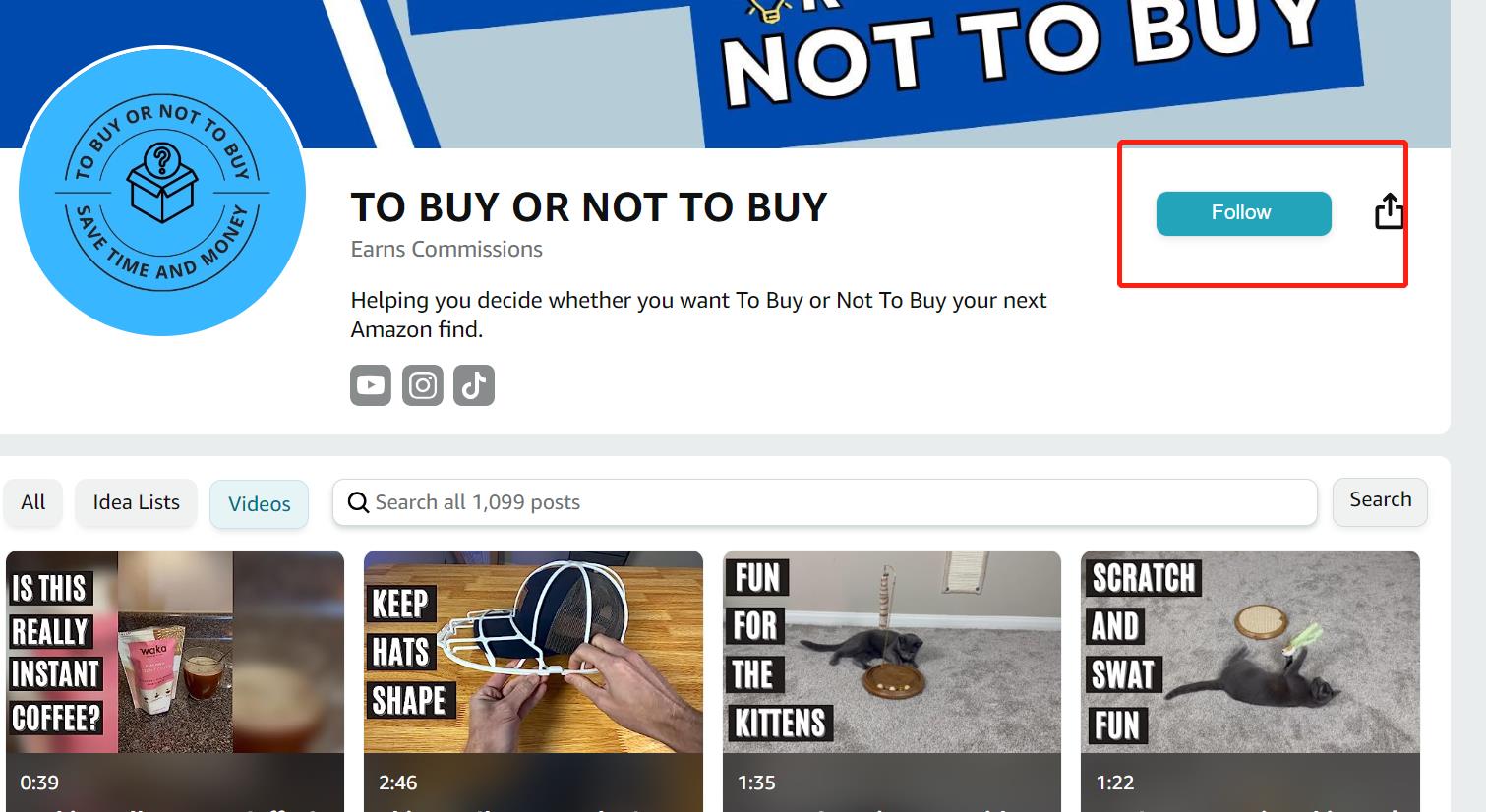 那挤不上去做了还有用吗?那当然是有用的,有两个点是对卖家比较有利的。其一呢,只要你找的红人有一定的粉丝量;那么首先他会对外和对粉丝分享自己的亚马逊影响者账号链接。之后,粉丝或者访客就会跳进红人的亚马逊链接去,首页视频就可以看见你们家产品的视频了。一般粉丝点进去红人账户也可以Follow红人亚马逊账号。