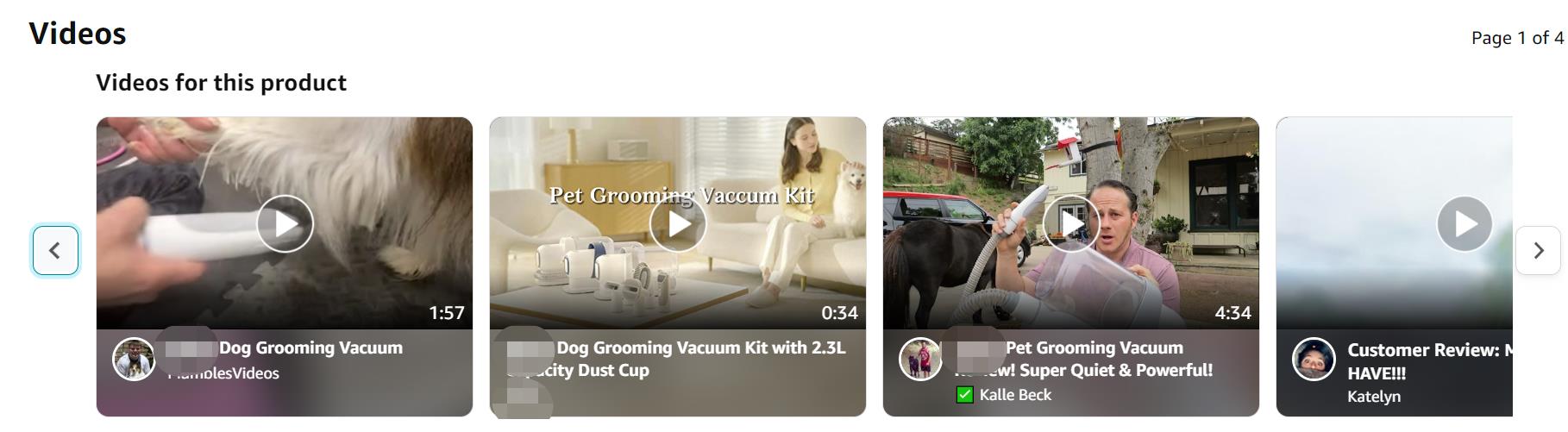 红人视频上传初期主要是展示在Videos for this product 这个横向板块,如果说超出了十个一般是挤不上去的了。