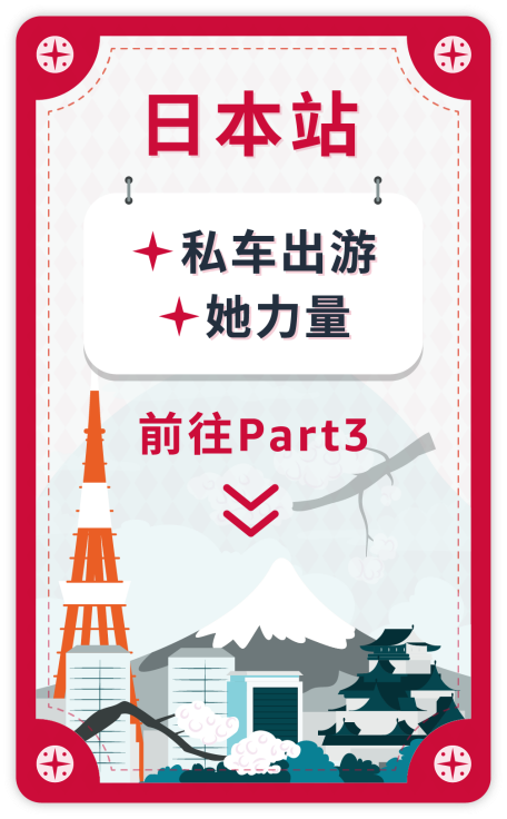 疫情结束后,选择避免拥挤的交通工具逐渐成为日本国民的旅行习惯,且相比起新干线,开车出行更方便全家出游,偶尔想呼朋唤友去旅行,也有更多的灵活性和自由度。而在日本政府的电动车推广政策下,2022年日本国内微型纯电动汽车销量猛增48倍,超4.1万辆[3]。多重因素带动了日本私车出游火热升温,已有54.5%的人群将“自己开车”作为最常选择的出行方式,比例直逼“搭乘新干线”(56.5%)![2]