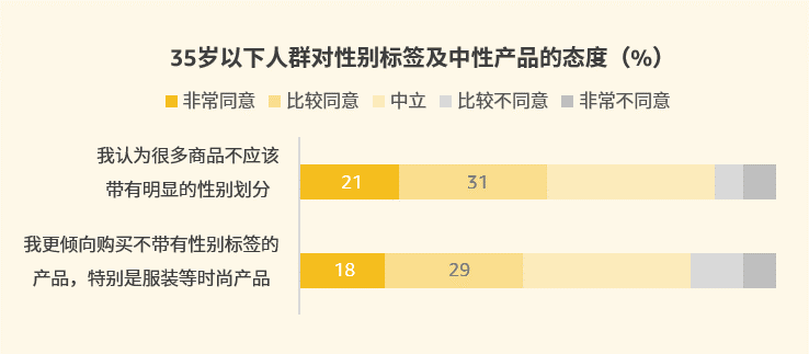 在新观念、多元价值观的驱动下,新新一代开始拒绝性别刻板印象。谁说性别就是全部定义?二元性别观念Out了!52%的35岁以下美国消费者支持许多商品不该带有明显的性别划分,并有47%倾向购买不带有性别标签的产品[2],特别是服装等时尚产品。也就是说,中性化的服饰、无性别儿童玩具等品类,未来将迎来无限商机!