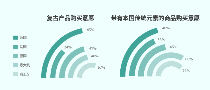 在这样的怀旧情节影响下,复古潮流逐渐回归,催动了新的商机。欧洲人更加愿意通过购买产品来重新体验“过去”或表达自我身份认同和对国家的归属感,为运用了传统工艺技术和设计风格的复古产品以及带有本国传统元素的产品带来了新的销售增长机会!