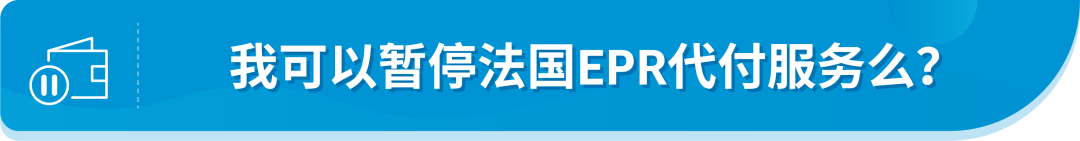可以,但前提条件是您已经自主在亚马逊卖家平台的EPR合规门户上传相应的UIN号来完成合规。因此,如果您需要停止该服务,请确保在季度结束前已在生产者责任延伸合规信息门户提交有效的UIN号,并通过验证。 复制以下链接至浏览器,登录亚马逊卖家平台,前往生产者责任延伸合规信息门户👇 https://sellercentral-europe.amazon.com/spx/myc/epr-compliance 例如,如果您不希望2023年第三季度的销售交易加入亚马逊法国EPR代付服务,则您必须在季度结束之前提交您有效的UIN号并通过验证。