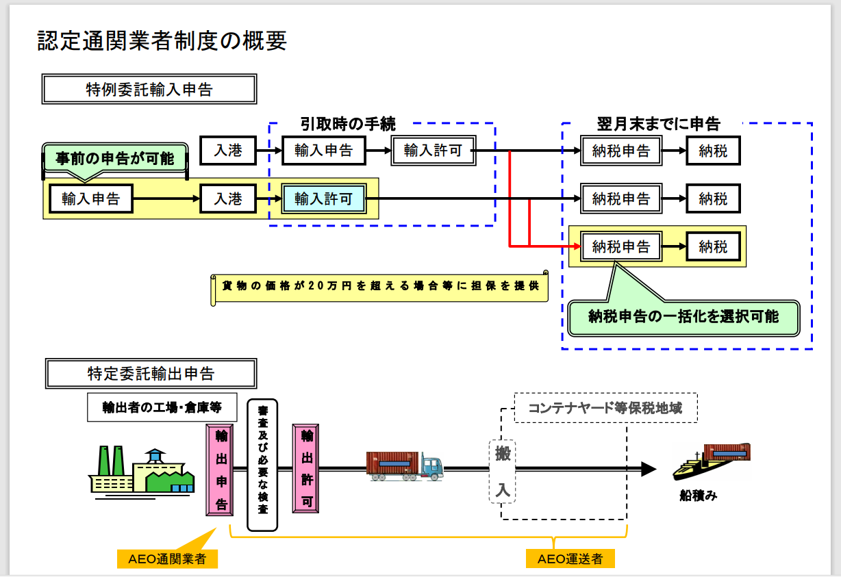 自2001年9月11日美国发生恐怖袭击以来,确保安全和便利国际后勤已变得至关重要。 为了应对这一趋势,世界海关组织(WCO)于2005年通过了一个国际框架(“标准框架”),其中包括“AEO(授权经济经营者)系统”的概念,在该系统中,海关对具有既定安全管理和法律合规系统的企业进行认证,并提供简化海关程序等好处。