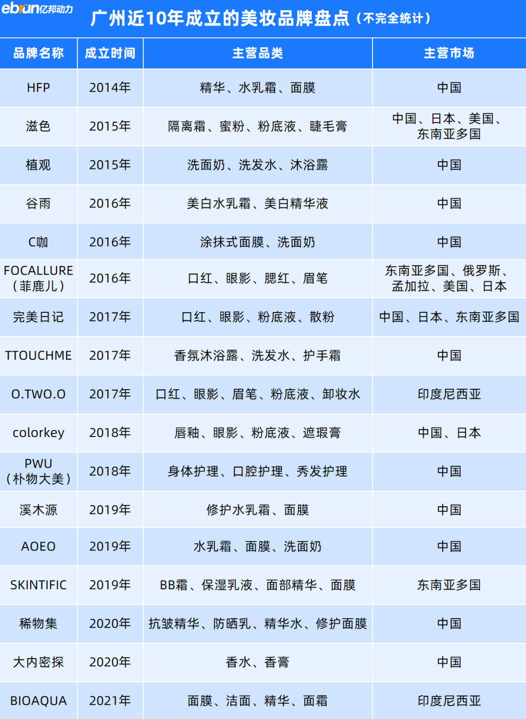 直到今天,许多国货品牌的主要销售渠道,仍然是下沉市场的乡镇集市和夫妻老婆店。显然,广州美妆没有抓住国货大撤退的浪潮,很长的一段时间以中小企业和代工厂为主,占据数量优势,但大而不强。