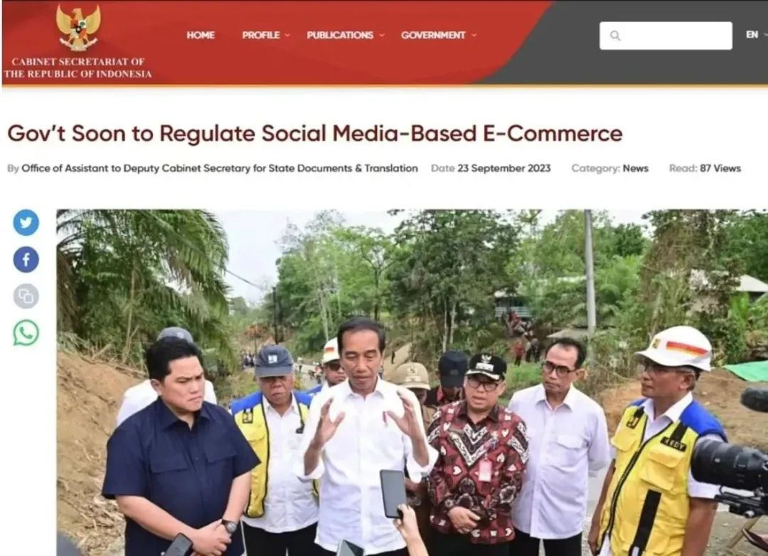 印尼总统佐科在23日视察基建项目时公开表示,正在加紧针对社交媒体平台的电商业务进行规管。这项监管规则涉及多个部门,并在近期由贸易部总结完成。