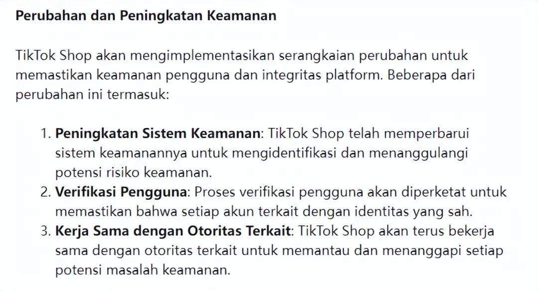 1、安全系统改进:TikTok Shop更新了其安全系统,以识别和解决潜在的安全风险。