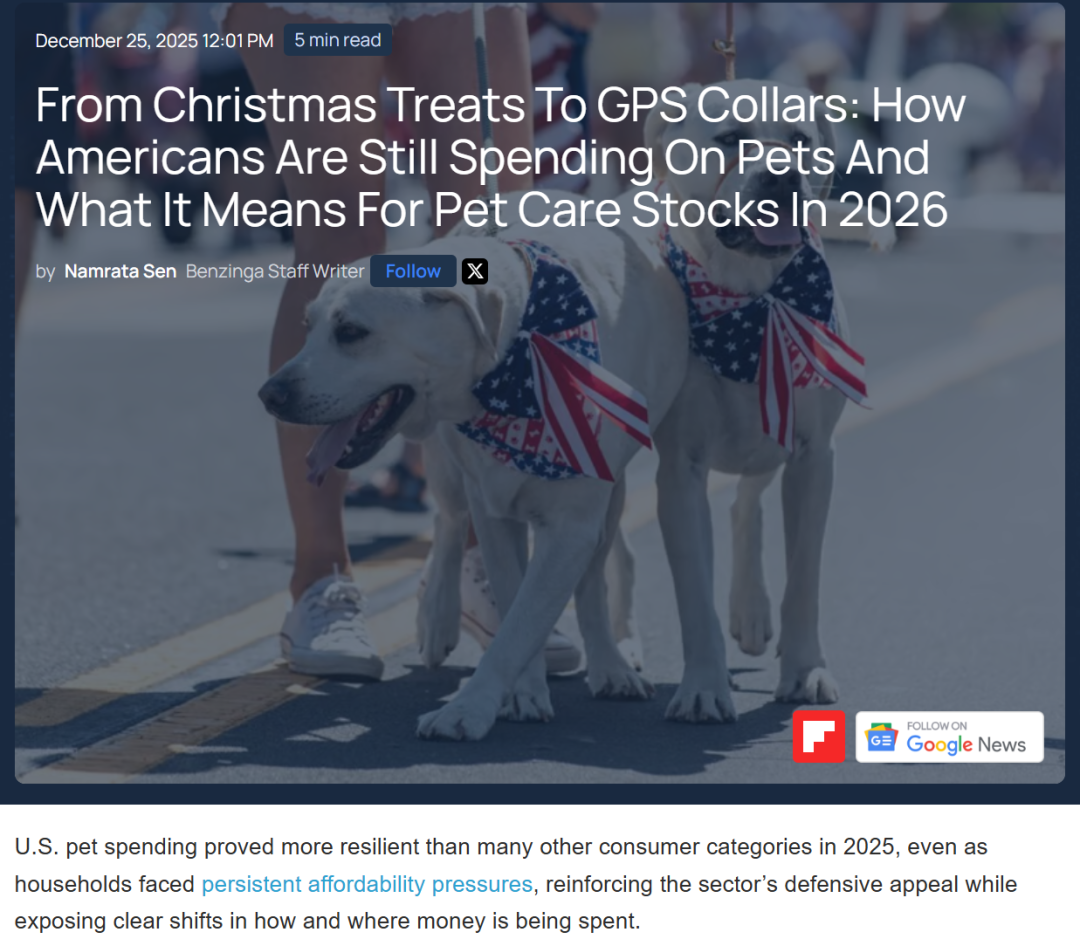 这一趋势让不同定位的品牌迎来差异化发展机遇:高端鲜食宠物食品生产商 Freshpet 仍能维持稳定的高端需求,但经济压力也限制了其进一步增长空间;而以价值为导向的宠物电商 Chewy 则表现亮眼,2025 年增长主要来自销量提升及 Autoship 订阅服务,而非依赖提价。