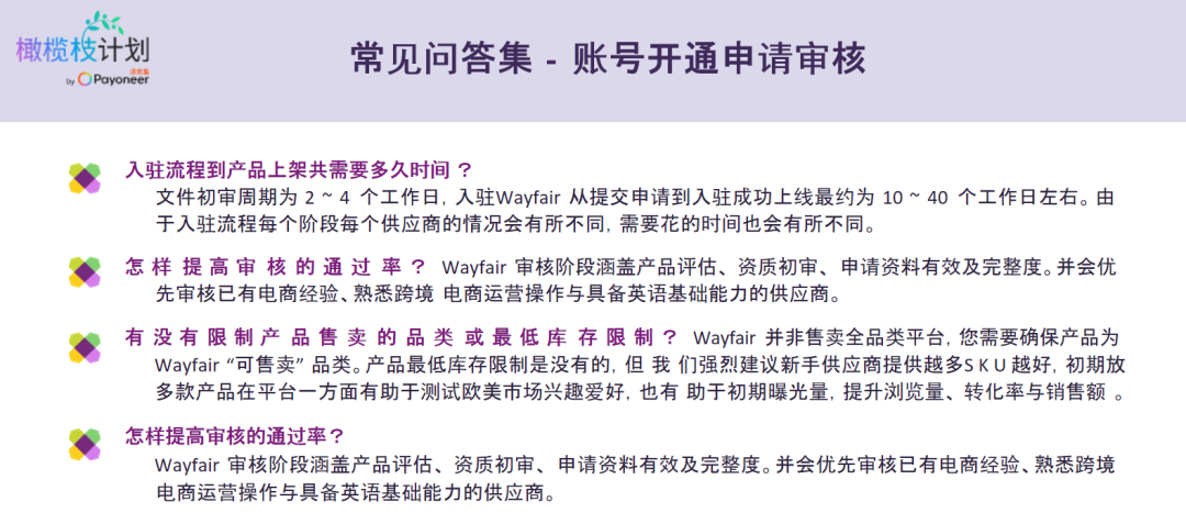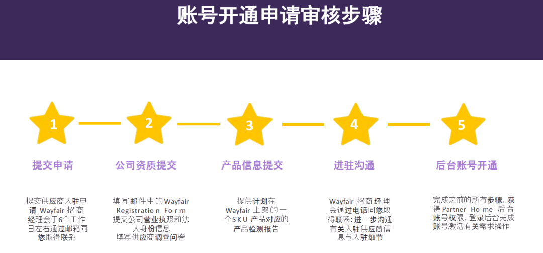 Wayfair审核团队会对提交的信息进行审核,可能要求补充材料,如营业执照、产品合规测试文件、海外仓证明等。