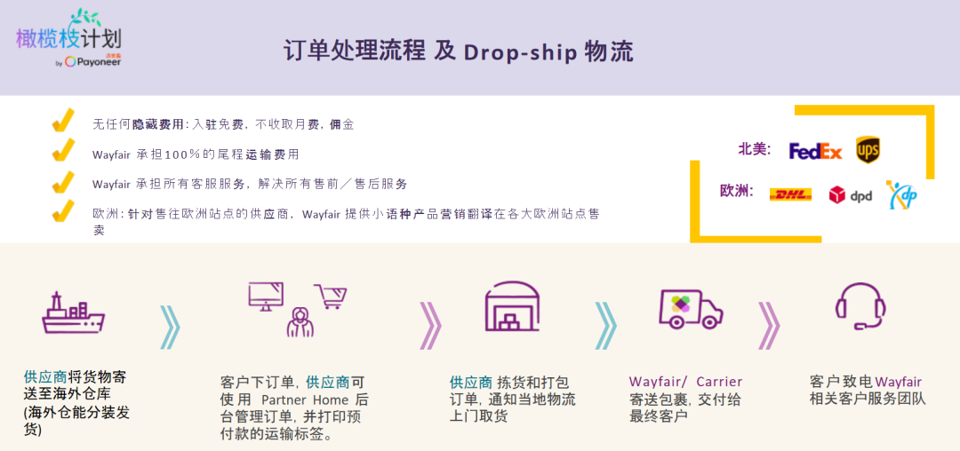 Wayfair负责售后和客服,但卖家需及时处理退款和售后问题。