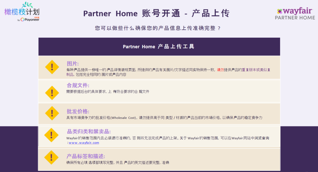 填写《Wayfair供应商信息收集表》,提供公司基本信息、海外仓信息、产品品类、SKU数量等给我们,AMZDH将拉群对接初审入驻资料,没问题递交给Wayfari审核团队。