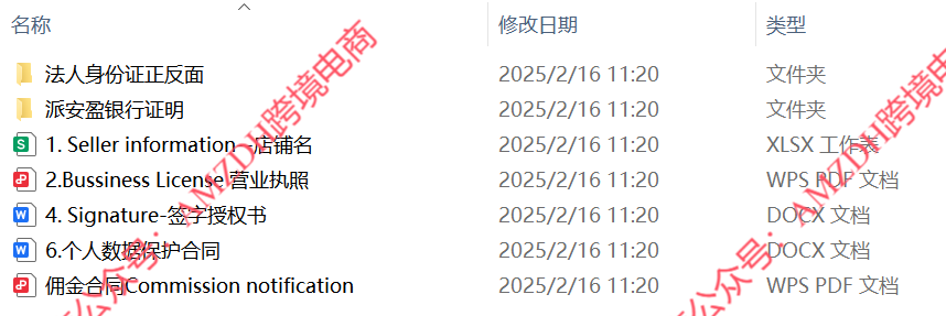 其它资料:法人身份证正反面+派安盈银行证明(Attention:N11)+邮箱+手机号+店铺名