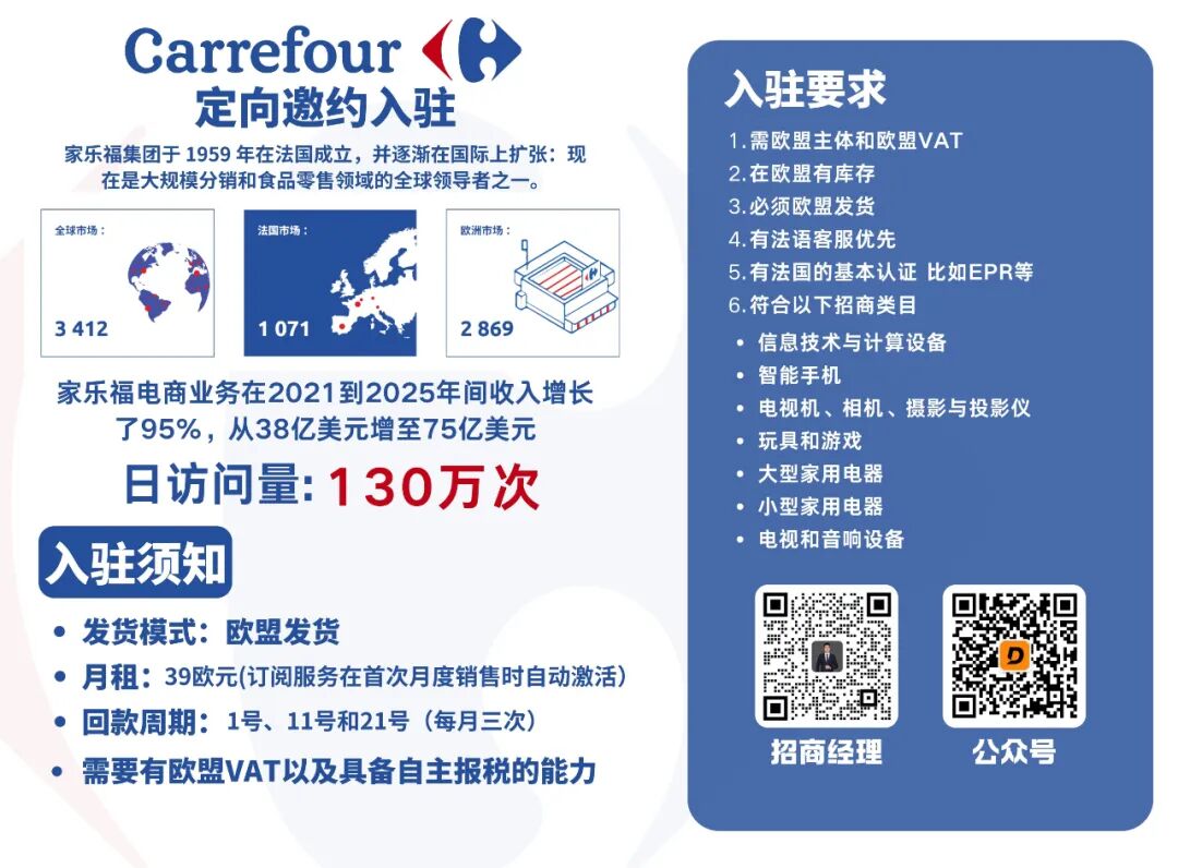 家乐福Carrefour作为全球零售的“老将”,正通过数字化转型与本地化策略重获增长动力。对于寻求拓展欧洲市场的卖家而言,Carrefour平台无疑是值得深耕的蓝海赛道。入驻Carrefour,就找AMZDH跨境服务。