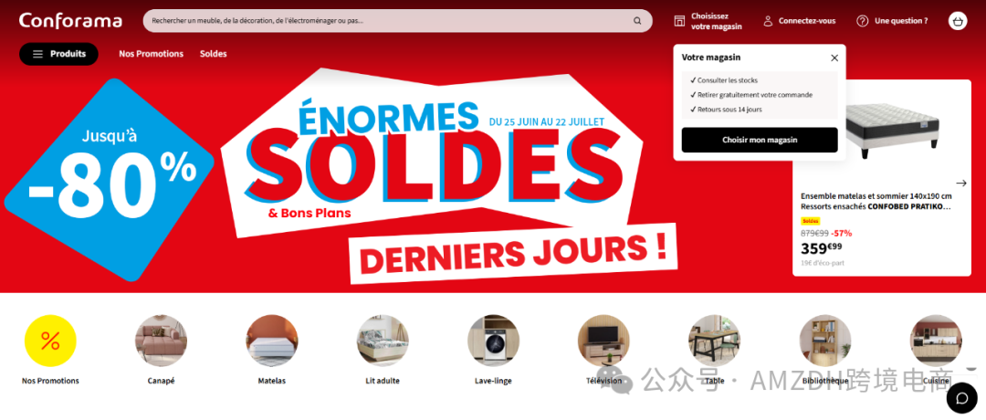 在法国电商市场,Conforama以“家居+家电+生活方式”的全渠道模式,成为欧洲第二大家居零售平台(仅次于Manomano)。2025年,其线上业务占比超30%,月活用户达1000万,线下235家门店覆盖全法。对于中国卖家而言,Conforama不仅是拓展欧洲市场的“黄金跳板”,更是实现品牌本土化的关键战场。今天AMZDH将深度解析平台优势、入驻规则,AMZDH也可助力卖家高效布局。