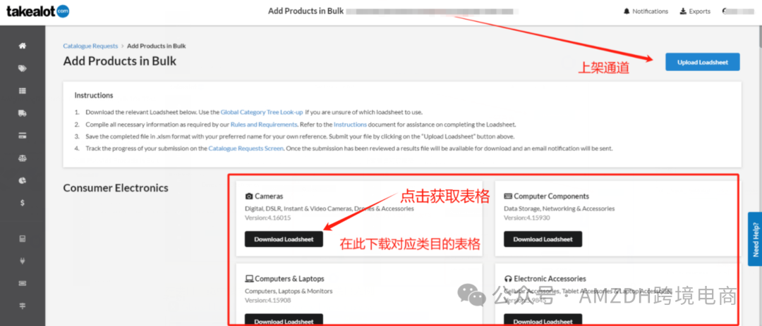 路径:后台-Dashboard-New Offers-Add to Takealot's Catalogue-Add Products in bulk