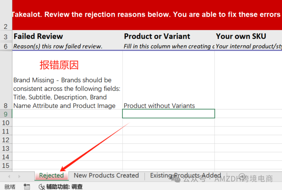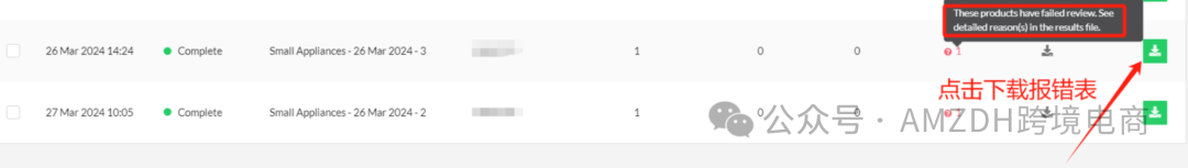 若出现报错,需要导出报错表,根据报错内容重新上传数据(请注意:通过表格上架的,可以保留原表,根据报错信息去修改错误内容。通过在后台填产品信息上架的,如果审核被拒绝,只能重新上传,后台不会保留原有错误产品信息。)