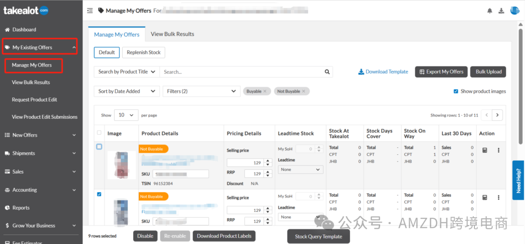 产品成功上传后台后,可在Dashboard-MyExistingOffers-Manage my Offers页面查看