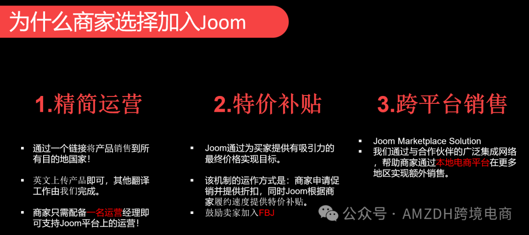 最近很多卖家跟我们反馈跨境电商市场越来越卷,问我们有没有低运营成本的平台推荐,当然有啦!今天我们推荐卖家调研入驻Joom平台,找AMZDH免费入驻还将享受Joom官方经理1对1入驻指导及3个月流量扶持。
