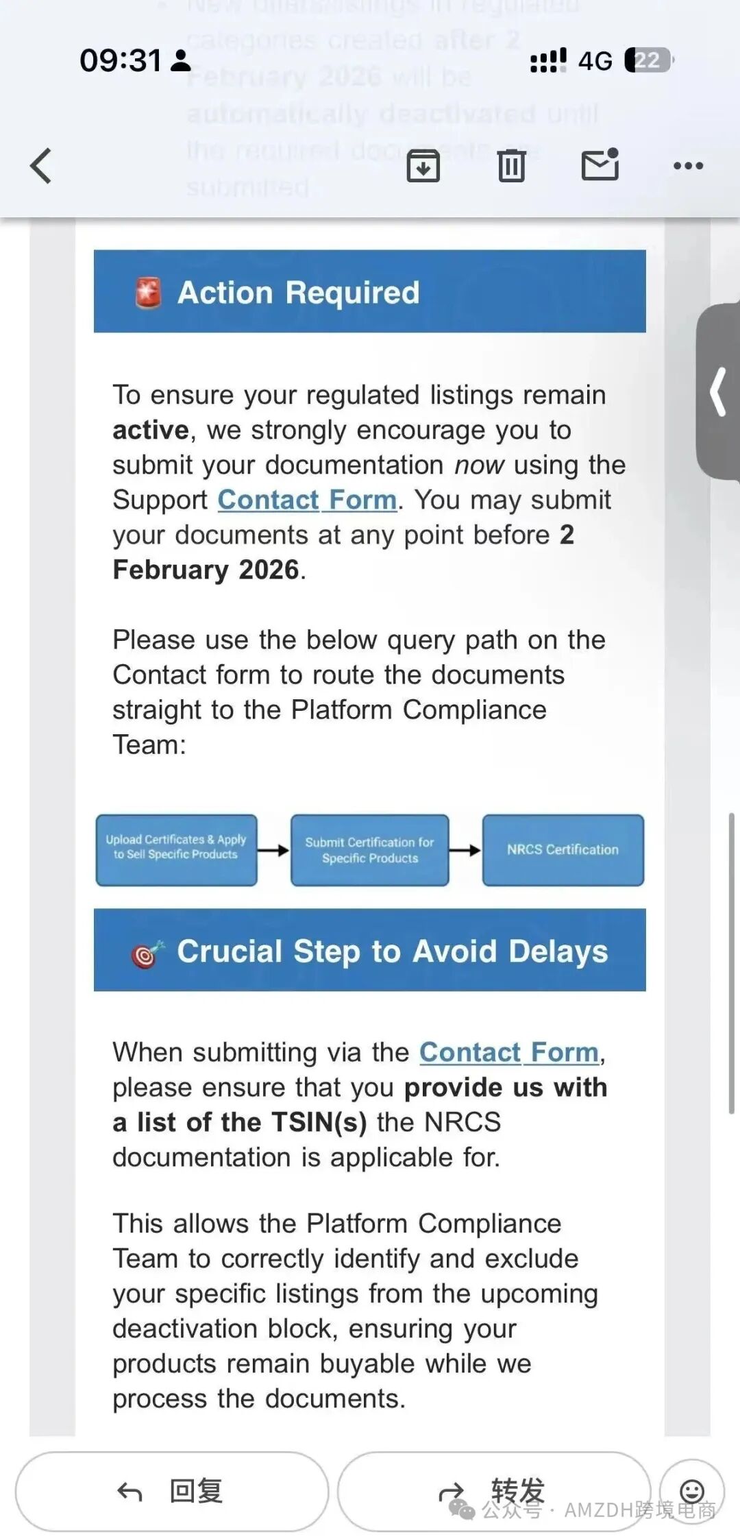 必须完成NRCS认证,2025年12月2日邮件明确要求2026年2月2日前上传认证文件,逾期产品链接失效。 其他品类