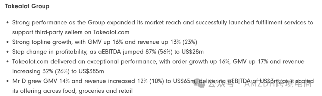 集团经调整 EBITDA(息税折旧摊销前利润)暴增 87%(以美元计),达 2800 万美元(约 4.86 亿兰特),其中 Takealot 旗下食品外卖服务 Mr D 表现亮眼 —— 收入增长 12% 至 6500 万美元,调整后 EBITDA 达 300 万美元,成为第二增长曲线; 会员体系成效凸显