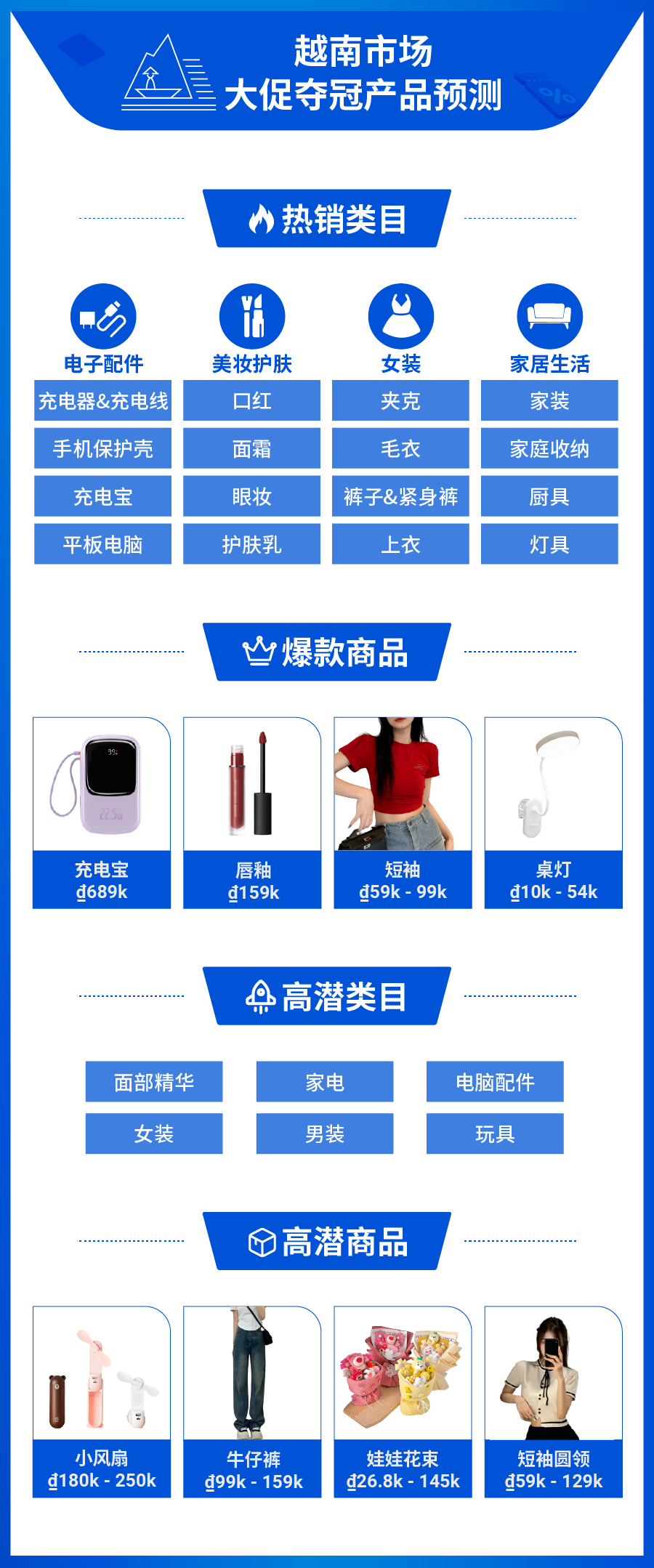 小编向各大市场的当地品类经理收集资料,为大家整理了菲律宾、越南、泰国、马来西亚、新加坡市场的热销高潜选品和各市场大促活动信息,让您11.11爆单十拿九稳!