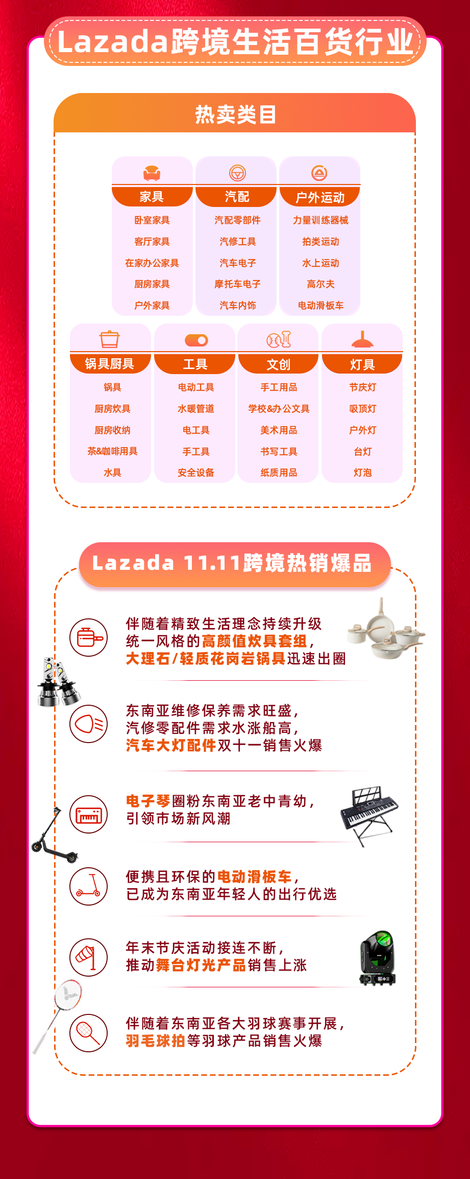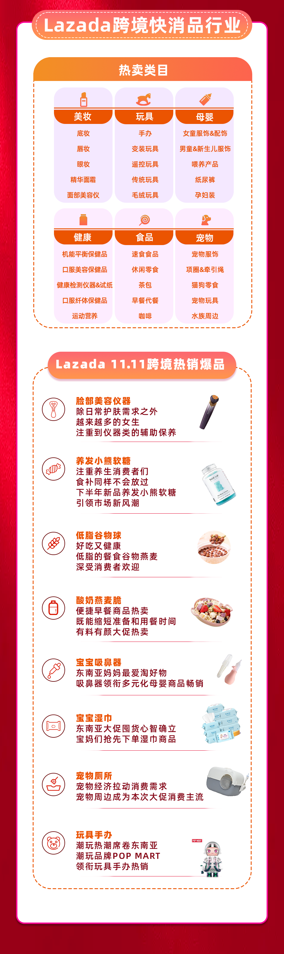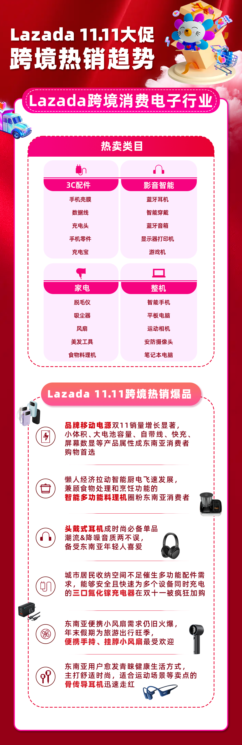 相比去年,哪些商品仍保持着高增长之势,请查收2023 Lazada跨境11.11战报,我们将根据跨境热卖类目及热销爆品,解读11.11爆发的秘密。(文末领取Lazada无门槛广告金&新款周边惊喜福利)